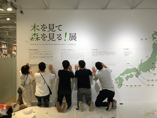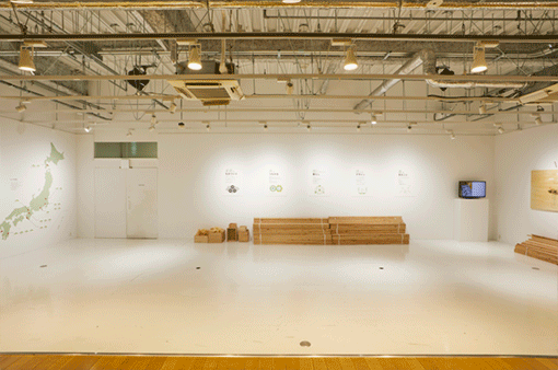 展示プランについては、木が持つアクセサブルな特性を活かして老若男女、世代を越えて参加したくなるように、そして参加できるようにすること。加えて何よりも、濃いや=コイヤのみなさんのチャーミングさをお客様とも共有できたら何より楽しいな、という2つのポイントがありました。通常の展覧会は、施工設営をして完成した空間から会期がスタートしますが、むしろ今回はゼロからお客様と一緒に空間を作って行こう、という、逆の発想をはじめて実現してみました。この実験的な企画のために綿密な打ち合せの実施を行い、関係者のみなさんにはトークやワークショップのプランをご提案いただき、予算やスケジュール、段取りなど事前の準備を念入りにお願いしたものの、キュレーターである私も実際にどうなるのか、正直出たとこ勝負のミステリーツアーのような展覧会でした。良くも悪くも想定外のことしか起こらない現場、閉店にむけた環境変化など、激流を筏でくだるスリルとサスペンス溢れる日々を、関係者みなさんの愛と木合い(敢えて木)とチームワークで乗り越えた気がします。何よりも、参加してくださったお客様が日本の木や森を巡る実情や課題について自分ごととしてかかわってくださったことが何よりの財産になりました。 |