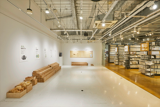 ATELIER MUJIのある有楽町店は世界の旗艦店で、7000アイテムある商品がほぼ揃い、毎月世界中から数10万人のお客様が来店されます。毎日がお祭りのような店鋪でのお買い物する楽しみに加え、さらに展示会で消費をあおるのではなく、ATELIER MUJIは多様な価値観や体験にふれることができる展覧会を通して、思いもよらない出会いやつながりが生まれたら面白いのではないかな、と期待しています。入場無料=ただ=価値がない、のではなく、むしろ貨幣価値では測ることができない何か=プライスレスな価値がある空間と活動は、お客様が価値を決めてくださるのです。また、MUJIでは、数十円のお菓子から数千万円の家まで、大勢のスタッフやさまざまな外部協力者の方々が、感じ良いくらしを目指して商いに日々全力を尽くしています。なので、1円たりとも無駄にはできません。展覧会に原価計算は似合いませんが、決まった予算の中で効果を最大化する智恵と努力が腕のみせどころです。これまでの経験値や綿密なリサーチに加え、日本が世界に誇る“もったいない精神”を発揮して、施工設営ではなるべく無駄やゴミがでないよう工夫を楽しんでいます。 |