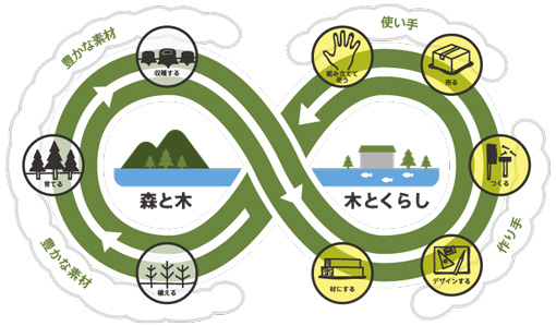 日本では、地方で一生懸命山を守って造林・伐採してまた植林をしていくという取り組みが、エネルギー政策の転換と共に崩れ、また、外材やRCの台頭により国産材の利用は昭和40年代以降大きく減少の一途をたどってきた。国内の林業・木材業は、最近ではオリンピックの開発やバイオマス事業で息を吹き返しつつあるが、消費増税やオリムピック以降の景気の低迷、何より少子化による住宅着工件数の減速など将来に対して危機感を抱いている者が多い。1立方メートル当たりの国産杉材は、バブル時代と比較しても数分の一程度の価格で低迷しており、今後、需要が一層減っていくならば、業界自体も、10年20年単位で見たときに果たして生き残っていけるのだろうかという不安を抱えていました。
