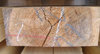 大きな特徴は、芯が残っている「芯持ち材」の方が強く、芯が外れている「芯去り材」の方が暴れにくいという事です。