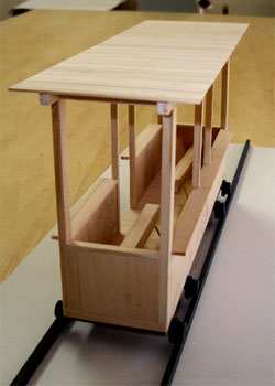 駅舎のリニューアル、線路を利用したトロッコ計画だ。前回はまだ漠然としたイメージであったので、スケッチやモデルを通し、具体的なイメージを掴んでもらった。単に駅とトロッコだけではなく、プラットホーム周辺のスペースで新しいコミュニケーションスペースが出来ないかというのが大きなねらいだ。