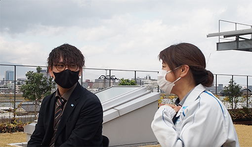 工藤) おしゃれですよね、おしゃれなところで働いている感じがあります。建設業って感じがしなくて、いい意味で印象がめちゃめちゃ違います。グリーンのお世話を自分たちでしていますけど、