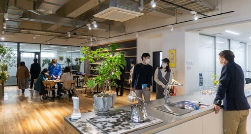 コロナ禍の2年間は外に出ない、表情も見えない、ということで人とのコミュニケーションがなかなか取りづらいという状況でしたが、その中でこういうコミュニケーションのための場をオフィスの中に作ってくれたわけで。会社の外ではなかなか人に会わないくても、せめて会社の中では人と触れ合えるという設定にしてくれた。こんな大変な時期にこういうオフィスができたというのは、未来が見えたという感じです。私もこういう会社で働きたいと、本当に思いましたね。息子に入社を勧めてよかったです。