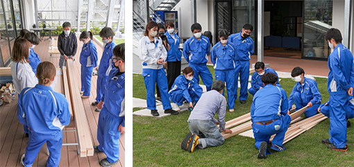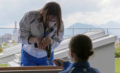 若杉チームから竣工記念として贈られた屋台制作のワークショップに入社ほやほやで参加したお二人 |