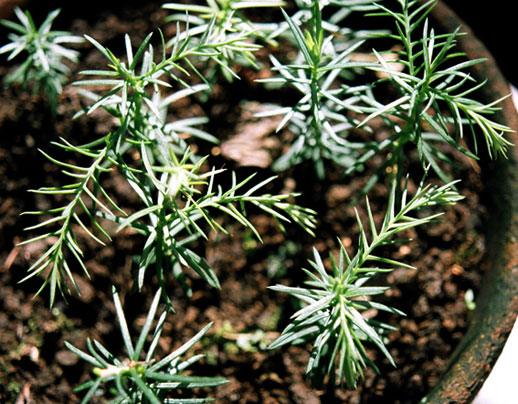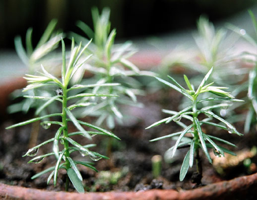 こうして杉の子たちは小さな鉢の中で枯れることなく、全員それぞれマイペースで育っています。マイペースというのは、とっとと分岐した杉の子もあれば、まだ分岐しない杉の子もいるからです。
