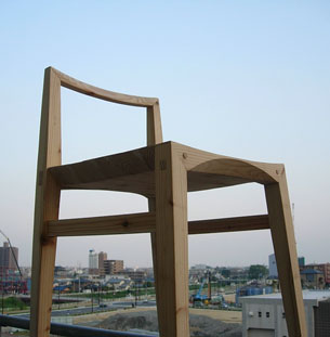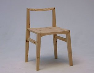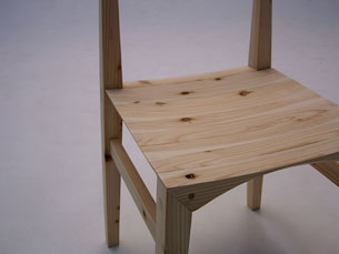 学校での課題がきっかけとなり、杉の椅子をつくることになりました。課題は自由に設定するものであったため、以前から興味のあった杉を使って「日本の木を使った日本人のための椅子」をテーマとして取り掛かかりました。しかし、杉を知れば知るほど家具材料として使うことがどれだけ難しいことかを思い知らされることとなり、そしてこんなにも杉は魅力的でおもしろい木なのだということを知るきっかけともなりました。 取り組みはじめた当初は杉のマイナス部分ばかりが目に付き、なかなか前に進みません。短所をいかにカバーしながら椅子をつくればいいのか、また杉をそのままダイナミックに使うような杉らしい家具のかたちを模索し続けました。しかし、そんな風に杉らしさを求めるうちに、杉の椅子の魅力は椅子としてのかたち以前に、杉という木そのものの魅力が前提としてあるから素晴らしいのだということに気付きました。触れた時の独特のあたたかさ。人に触れる家具だからこそのやわらかさや節がもつ生命力溢れる木の表情。こんな杉そのものの素晴らしさを伝えるには、杉らしいかたちを求める以上に、いかに杉に興味を持ってもらえるか、実際に使ってもらうことができるかが一番重要なのでは、という結論に達しました。そのためには、本当に気にいった椅子がたまたま杉の椅子だった、というような自然なかたちが最も理想的なのではないかと考えました。 家具材料としての杉の弱点は強度、硬度共に弱く、接合部に強度や精度が求められる家具をつくることが難しい点にあると思います。結果、椅子などは部材の大きなものになりがちで、いわゆる「杉の椅子」のイメージを形成しています。しかし、この杉の素朴でおおらかなイメージが必ずしも良いイメージであるとは限らず、重くて無骨な杉の家具にマイナスのイメージを持っている人も少なくありません。そこで、こうした杉に対するイメージを変えてしまう、固定概念と別のところにある杉の椅子も必要なのではと考えました。そうした思いから生まれたのがこの杉の小椅子です。接合部や構造面ではこれまで通りおおらかに。一方で、ホゾに建築で用いられるホゾを応用して強度を高めつつ、無駄な部分をそぎ落とすことで、重さを感じさせない軽快な杉の椅子となっています。反省点や改善点もまだ山積みではありますが、この椅子が杉に対する固定概念を変え、杉の可能性をさらに広げるものになればと考えています。