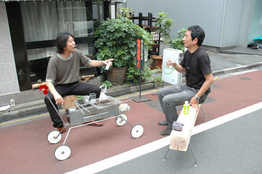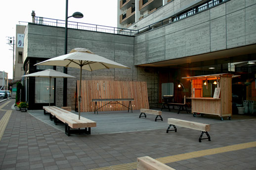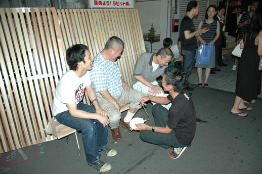 それからのウチダデザインチームの動きは凄かった、トラックを手配し、杉太や様々なスギダラ家具を持ち込み,商店街の方々に交渉し設置場所や焼酎バーの設置へお願いをし、あっという間にスギダラ空間を作った。僕と千代ちゃんも焼酎の手配、交渉に奔走した。汗だくだった。焼きとリバーはどうしても用意できなかったのが気がかりだったが、今回はどうしようもなかった。