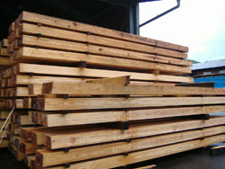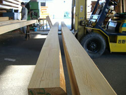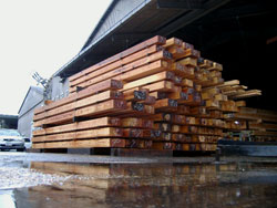 写真10:雨に打たれる杉の梁材。雨水に濡れながら、乾燥が進んでいきます。