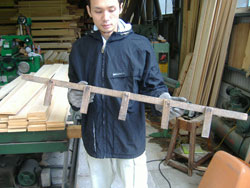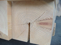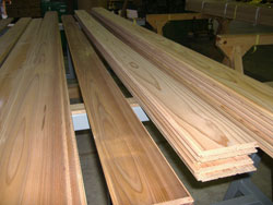 桧の場合は天然乾燥でも人工乾燥でも大差はないのですが、杉の場合は割れと変色の問題があります。杉は個体差が大きく一概には言えませんが、割れが入りやすく、木口の割れがひどい場合には4m材が3m用としか使えなくなる場合があります。また渋味が表面に溜まり、赤味の部分が表面から3〜10mm程はチョコレートのような濃赤色になってしまい、色合いが悪くなってしまいます。杉は天然乾燥の方が向いているのかもしれません。