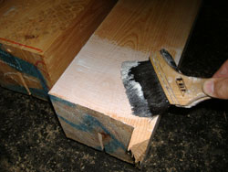 写真18:木口は特に割れが入りやすいので、念入りに塗ります。