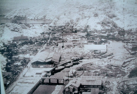 写真1:油津貯木場全景 (昭和10年頃)