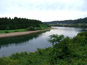 雄物川の川縁の眺め。