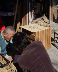その後何度か日向へ行き、やっと製作をお願いする工房が決まり、職人の方にお会いして、このナミキの椅子に対する思いをお伝えする事ができました。僕が日向へ行けない時は、なんとか僕の意図するものが伝わるように図面に気持ちを託してFAXしました。正直なところ、製作過程を一度も見ることなく完成の日を迎えたのは「はじめて」でした。