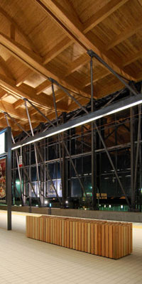 2006年10月、12月17日の新駅舎完成を目前にし、はじめて日向市でベンチの打ち合わせを行いました。設置するまでの日数を考えてみると、最初は僕が普段からよくお願いする京都の木工所での製作も視野にいれていましたが、やはり宮崎県の杉を使い、日向市の工房で、という地元の方々の熱意を感じ、その方向で進めることにしました。