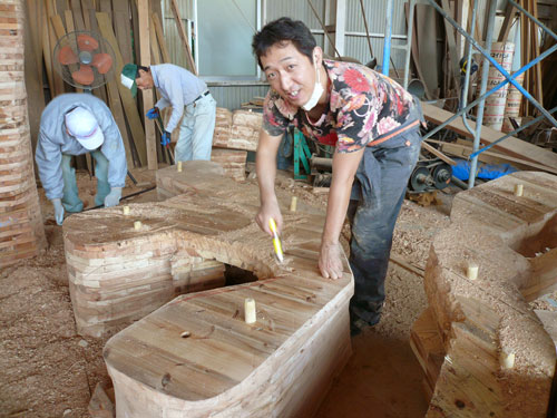 応募を決めて、先ずは図書館とネット上で杉について色々と調べてみた。仕事等で杉を扱った事も無く、杉に対する知識が殆ど無かったからだ。調べて分かってきた杉の特徴は年輪が広く比重が小さい為軽く柔らかい、一方、靭性が高い、肌触りが暖かい。特に飫肥杉と呼ばれ宮崎を中心に産出する杉は、油分が多く、防蟻性、耐久性が高く、香りも高い。昔は弁甲材(船の材料)として需要が高かったという事等だった。過去に自分が手にした杉材を思い返して、なるほど、と納得する点などもあった。こういった杉の特徴を踏まえて、特に杉という素材の持つ柔らかさ、暖かさといったものを伝えられるものを作れたらいいなと思っていた。