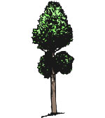 インターネットで「京都府の木」を検索すると右の絵が出てくる。一本立ちであり、記念樹の台杉でない。