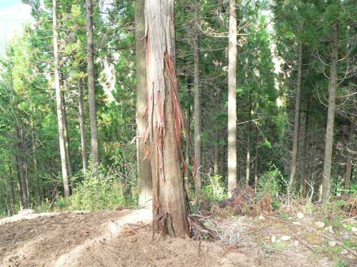 ところで、現在の私の仕事は鹿や猪、猿などの野生鳥獣関係なのですが、最近、現場を回って見てみると、鹿の食害が非常に深刻になっています。鹿ネットで囲まれた造林地でも鹿がネットを噛み切って侵入し、杉を食べてしまっています。また、天然林内でも、下草を食べ尽くしてしまい、林床内が裸地化して浸食を起こしており、森林被害は非常に深刻化してきているのです。さらに、森林被害だけではなく、植えたばかりの稲を鹿が食べてしまったり、畑を荒らしたりと、里での被害も多く、循環資源である杉などを資源として維持していくための仕組みのベースとなってきた山での生活がこのままでは困難になるのではと心配されます。この件については、私の現在の本業なので、真面目に取り組んでいきたいと思います。 |