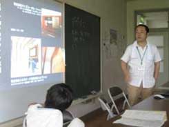 公共空間だからこそ、ひとりひとりが思い思いに居て心地いい場所が大事。小学校の校舎や庭の設計での楽しい例や、世界の公園の使われ方などをスライドで紹介頂きました。大阪大学の講義室や建築設計製図室を使わせていただき、子ども達もちょっとかしこくなった気分? |