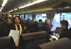 | 宮崎空港から日向市へ、中村さんより概略を説明。 | 日向市駅到着、県、市の関係者がお出迎え。 | |||||||||||||||