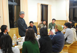 せっかく盛り上がり、ゆっくりしたいのだが、日も暮れてきた。ここら辺で、若杉、ナグモがハンドマイク片手に今回の取り組み、秋への流れ、最終的に日南で行おうとしている事などを説明する。それだけではつまらないのでおまけもつけた。その内容についてもオビダラ日記へ。 |