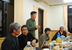 昨年の11月、日向杉コレが終わり、来年の日南大会をどうするか?、十日会の面々は来年に向けての内藤先生、内田洋行に挨拶をするため東京に行っていた。その夜は例によって内田洋行との飲み会、そこに川上元美さんがいた。若杉さんから電話がかかってくる。「盛り上がっていますよ〜。木青会も川上さんも。早く川上さんに宮崎に行ってもらいましょう!」