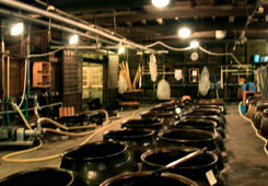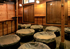 | 代々伝わるボイラー、蒸気機関車と原理は一緒。 | ずらりと並ぶ焼酎亀。写真撮ってもかめへん。 | |||||||||||||||