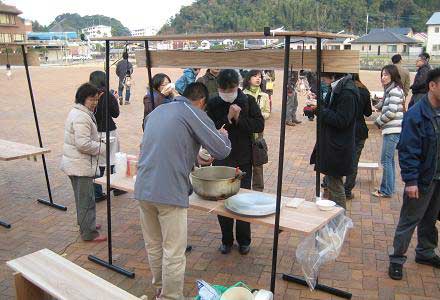 試作中の飫肥杉ヤタイで交流会 |