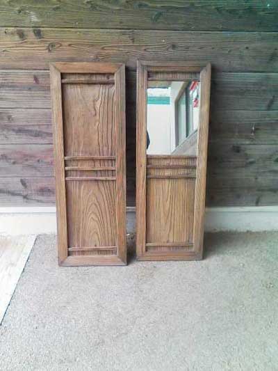 | 今回は、建具に鏡を取り付けました。 喜んでいただけるかは、心配ですが、98年の歳月を経た自分の家の部材です。大切に使ってもらえればと思っています。 |