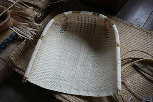 初めて見る、オエダラ箕。想像していたモノより、色が白くて繊細な印象。 |