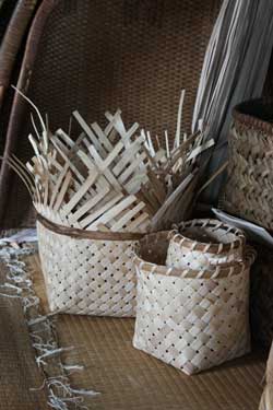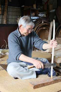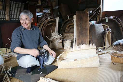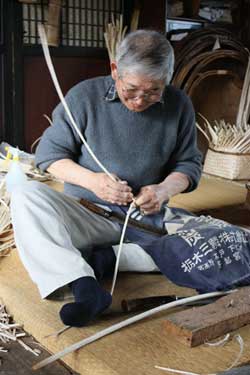 新規販路開拓のため、オエダラ箕の製作の傍らで籠なども作っている |