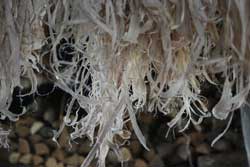 ねじれがあると使えないが割いてみるまで判らない。作る前に十分に水に浸しておく。 |