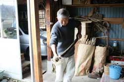 | 今回は「スギダラ」ではなく「オエダラ」のお話。3月に秋田市太平山のふもとの集落に伝わる「オエダラ箕」というイタヤカエデを使う民俗工芸があることを知り、早速オエダラ箕職人の田口召平さん(70)を訪ねることになった。秋田中央インターから5分ほど、のどかな里山里地の風景が広がる秋田市太平黒沢稲荷に召平さんの家と作業小屋がある。 | ||||||||||||||||