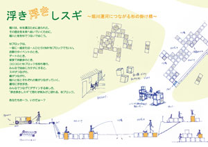 | 二人乗りの人力水上歩行(スワンのいかだバージョン)。とてもおもしろそう!各町内会などに参加を呼びかけ、レースを行うとのこと。これもおもしろそう! | |||||||||||||