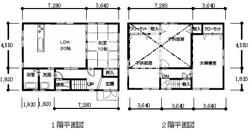 | 剛床とした場合の注意点は、木質構造での剛床としての仮定を過大に評価しないことが重要である。 木質構造の水平構面はS造・RC造に比べると剛性は高いとは言えず、むしろそれらの構造から見ると柔かいと言った方がよい。よって余り大きな空間は確保できないと考えたほうが無難であるが、一般の設計者(意匠系)にはまだ理解されていないのが現状である。(図―2) 長辺方向の最大スパンの目安として4間程度、最大床面積35u以下とすれば一般的住宅の場合十分対応できると思われる。それ以上の大空間を作る下記のような場合は、さらに注意と慎重な対応(構造計算及び実験等の検証)が必要である。 |
