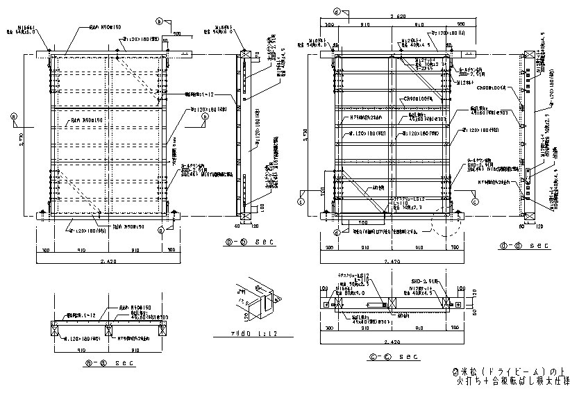 | 試験体図 | *図面をクリックすると、もう少し大きなサイズのものが見られます。 | ||||||||||||||||||||||||||||||||||||||||