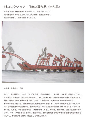 「杉コレクション2009 in日南」 二次通過作品(10点) テーマ「運河上向く杉のかたち―笑えるデザイン」 |