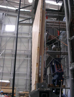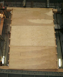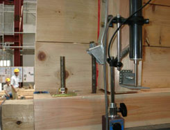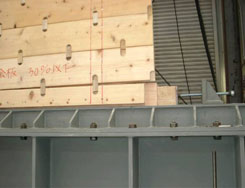 試験状況(桧「吉野産」厚板 せん断抵抗ダボ仕様 その2{振れ止め補強後}) |
