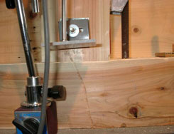 試験体の板間のズレを見るため、ビスのところにラインを入れてチェックすることとした。 |