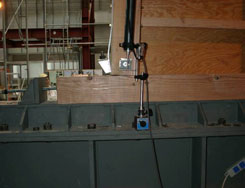 鉄骨のフレームからのボルトが1本だけで振れ止めローラーが設置されていたため、壁体の大きなねじれにより振れ止めローラーが変形してしまい試験中止となった。 |