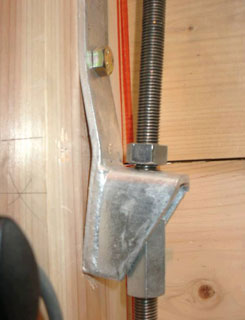 | 写真4 ホールダウン金物曲げ降伏状況 (1/50rad時) 変位が0になってもホールダウン金物が降伏したため、ナットとホールダウン金物の間に隙間が見られた。 |