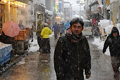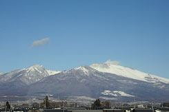 関東は晴天、長野新幹線から見える浅間山はいつ見ても美しい。富士山の美しさとはまた違い、優しく女性的な魅力がある。見とれているうちに軽井沢を過ぎ、雪がちらほら降り始めて間もなく長野駅に到着する。なぜか長野駅は乗り換えばかりでゆっくりしたことがない。今回も駅周辺をぶらぶらしただけである。積雪は20センチ程度。