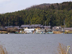 | 集落に迫る竹林(権座から対岸の白王地区をみる) | 権座へは白王地区から船で渡る | ||||||||||||