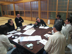 | 白王地区の里山から伐採・搬出したモウソウチク | 白王地区住民の方々との打合せ | ||||||||||||