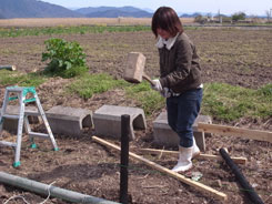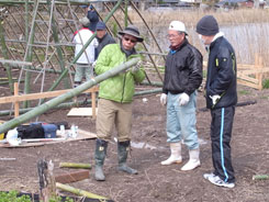 | 京都で試行建設したバンブーグリーンハウスでは、間伐竹材を用いた栽培温室を実際につくることで、竹構造の技術的検証や建設合理性の確認をおこないました。権座ではこの経験をもとに、地域住民によるセルフビルドを目的に実施し、自力建設が可能なことを確認しました。今回のプロジェクトは、里山の竹林整備という面から見れば、まだまだほんの小さな出来事かもしませんが、バンブーグリーンハウス建設に注ぎ込まれた人々のエネルギーは、非常に大きかったと思います。「権座・水郷を守り育てる会」会長の東氏は、今後竹チップの農業利用試みや、竹材を利用したカボチャ棚の製作を計画しています。権座バンブーグリーンハウスの建設をきっかけに、地域環境の整備につながる活動がもっと拡がればと思います。 | |||||||||||||