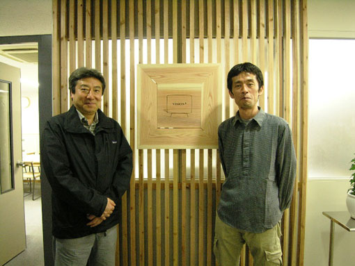 | 今回はスギダラ空間をつくりたいとスギダラ本部に自ら飛び込んで来た奇特な?方々をご紹介したい。 スギダラ本部事務局のある内田洋行では基盤ビジネスであるオフィスづくりにおける問い合わせや引き合いばかりでなく、杉に関する問い合わせや杉材の実空間での活用を見に来てくれるお客さまも本当に多い。その大半は口コミの紹介だ。 今回ご紹介する某有名放送局の系列制作会社VISION+の毛利さん、桜井さんもその口なのであるが、元々のきっかけは1年ほど前に遡る。 VISION+の毛利さんは、とあるCGクリエーターの方を通して、スギダラ本部デザイン部長若杉氏と接点を持つ。その時はCG関係のビジネスでのご紹介だったらしいが、若杉氏は当然来ていただいた方には杉の活動のPRもするわけで、その時の毛利さんの記憶が今回のVISION+さんのオフィスのスギダラ化計画に繋がったのである。 正に杉が繋ぐ絆「すぎずな」なのである。 |