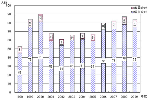 | 川上村木匠塾参加者人数の推移 教員・学生別 | |||||||||||||