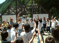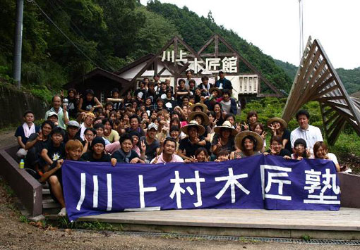 | そのような活動のなか、学年、大学、世代、地域、といった枠組みさえ、やがて曖昧にしてしまい、チームとしての木造構築物を造り上げる力がある。 まさに「生物としての樹」と「木匠塾の活動プロセスの循環」を意識することで息の長い活動としても捉えられよう。かつて木匠塾の活動は所属大学を超えた連合としてインターユニバーシティサマースクールと称された。しかし、今や大学どころか地域や季節を越えた活動であり、塾そのものの意味は広義的になりつつある。木や人との出会いからしても、ここでいう塾は「会」、つまり、木匠塾実行委員会、略して「木匠会」でもある。 |