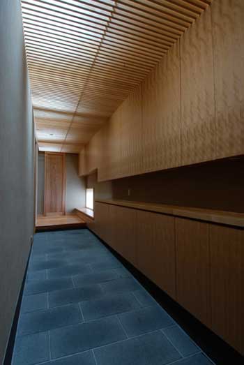 | 最近では2008年の黒木邸がある。月刊杉22号に書かせていただいたが、高鍋の黒木さんは人一倍、地元のものにこだわっている。母上の住宅を増改築するにあたり、宮崎産の木材を是非使いたいということで、工務店がいろんな方面を調べた。そうすると、県南に『H銘木』なる存在を知ることになった。あえて所在地や店名を出さないのには訳がある。未亡人がスタッフ2名と運営している銘木屋で、無造作に点在する倉庫に時価数10〜100億円はするであろう、膨大な量の霧島杉や綾のケヤキやカヤなどの原木が蓄積されている。うっかりその存在が知れると危険なことになる、と思うのだ。亡くなったご主人の父親の先々代社長が豪腕で買い集め、数十年間、倉庫で眠っている木材からは、大きな安心感と豊饒感が醸し出されている。鈍感な僕でも木が発する力を、厭というほど感じてしまう。僕も黒木さんもスッカリ惚れ込んでしまった。1枚の板幅900mmの霧島杉を框戸に仕立てて引き戸を作り、和室などの天井には県央の市房山の杉や綾の栂などを使った。もちろん高価な素材だが、これも普通の杉を使い続けたご褒美だ、と思っている。黒木さんだって、母親の家という名目があるので使えるが自宅だったら躊躇する、と漏らし、大工さんも生涯で2度とこんな材料を刻むことはないだろう、と高揚している。 | |||||||||||||