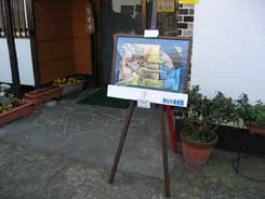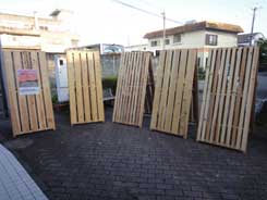 | 2次審査会の作品展示ギャラリー前に出現した杉パーテション | 商店会が以前から行っている「街なか美術館」 (子供杉コレ応募作品が展示される) | ||||||||||||||||||||||||