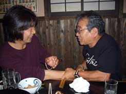 商品化を目指しガッチリ握手。左:南雲氏、右:筆者(2006年07月) |